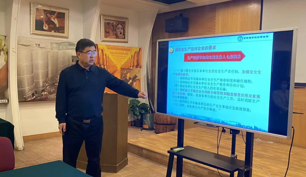 為進(jìn)一步提升安全生產(chǎn)責任意識,按照北京龍徽釀酒有限公司工作安排,2021年10月20日,龍徽公司安全行保部組織開(kāi)展了新《安全生產(chǎn)法》培訓,龍徽公司領(lǐng)導班子成員、中層干部、北京龍徽國際酒文化創(chuàng )意產(chǎn)業(yè)有限公司部分領(lǐng)導班子成員參加了培訓。